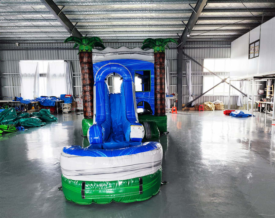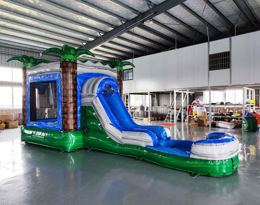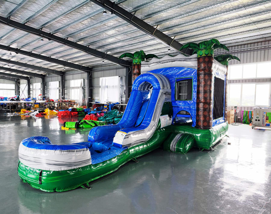 The Aqua Palms 4-1 Wet/Dry Combo offers endless hours of fun with its dual functionality. It features a spacious jumping area, a thrilling water slide, and a refreshing splash pool. Whether you’re sliding down or bouncing around, this combo is designed to provide non-stop entertainment for everyone.