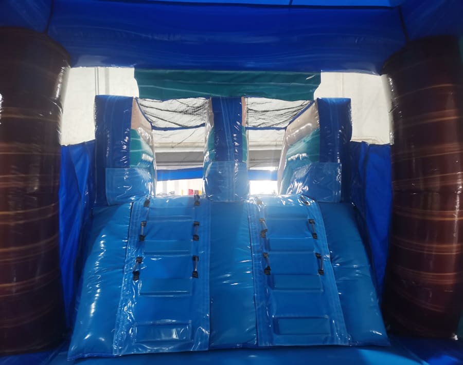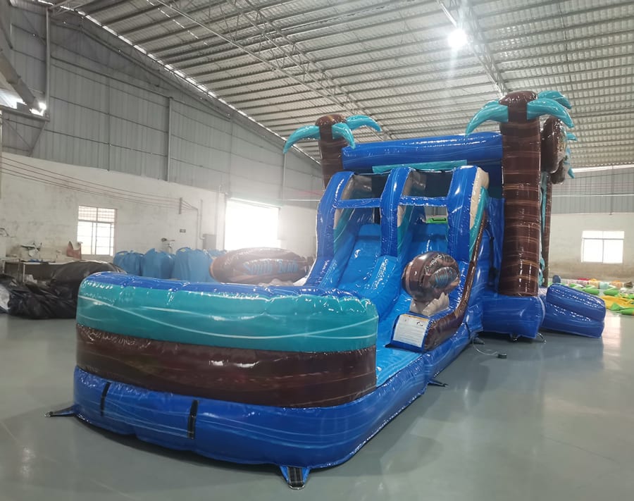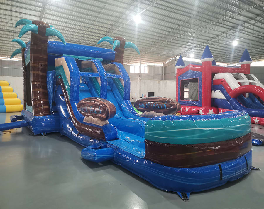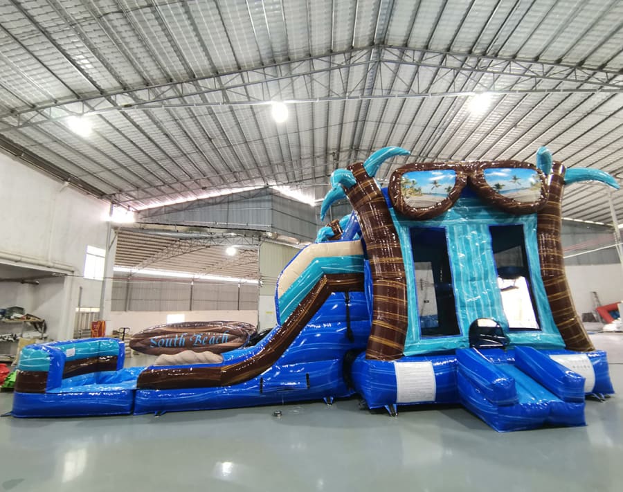 Introducing the “South Beach Bounce Slide Combo Inflatable” – a vibrant and exhilarating play structure that brings the sun-soaked energy of South Beach right to your backyard or event space. Get ready for a splash of tropical fun with this beach-themed inflatable, where the spirit of the coast meets the thrill of active play.